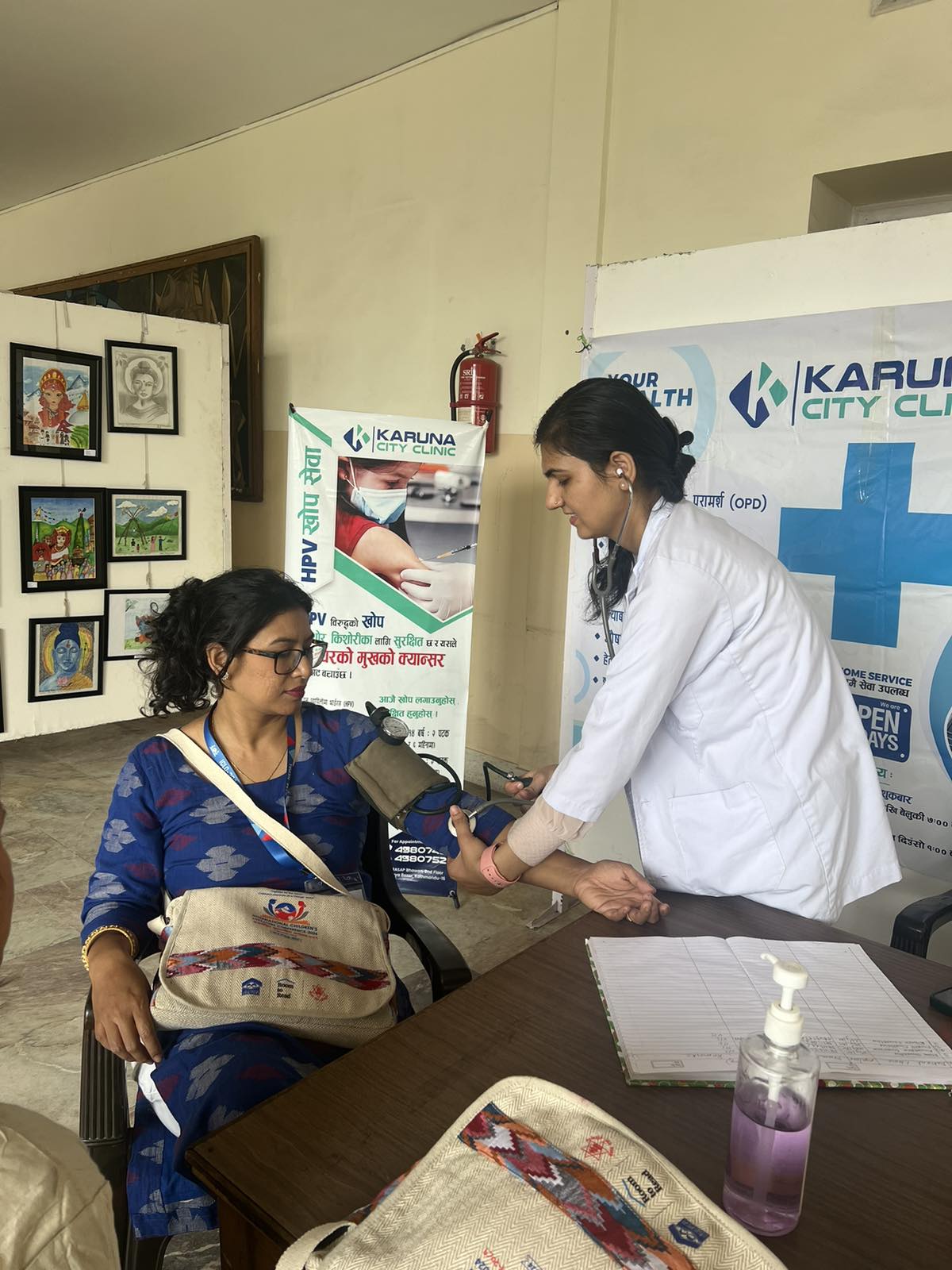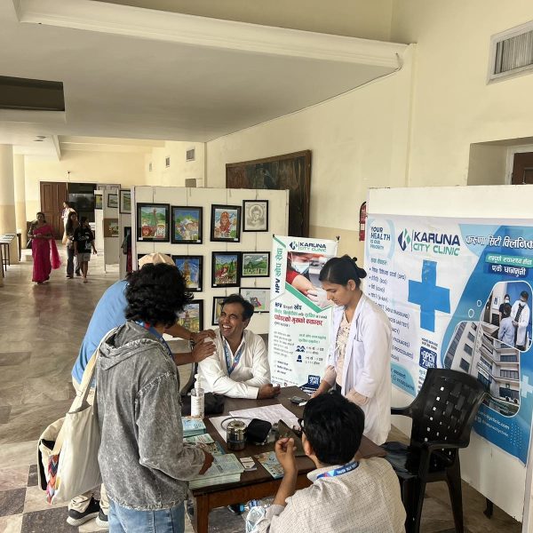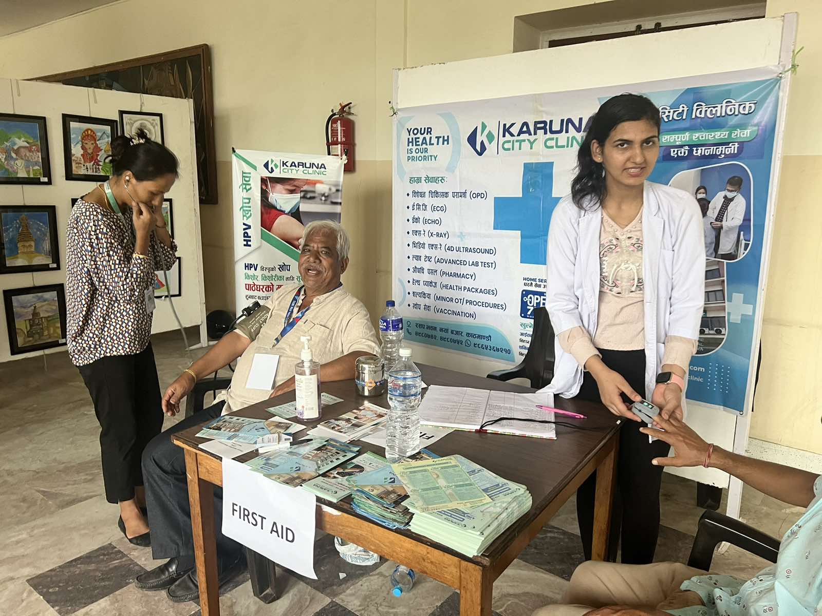 साथै नेपालमा महिलाहरूमा हुने प्रमुख क्यान्सर – पाठेघरकाे मुखकाे क्यान्सर – बारे जनचेतना बढाउने उदेश्यका साथ पाठेघरकाे मुखकाे क्यान्सर सम्बन्धि जनचेतनामूलक सामाग्री वितरण गर्नुका साथै सहभागीहरूलाई सावधानीका उपाय, नियमित परिक्षण (screening) तथा पाठेघरकाे मुखकाे क्यान्सरबाट जाेगाउने खाेप (HPV vaccine) बारे महत्वपूर्ण परामर्श प्रदान गरिएकाे थियाे ।