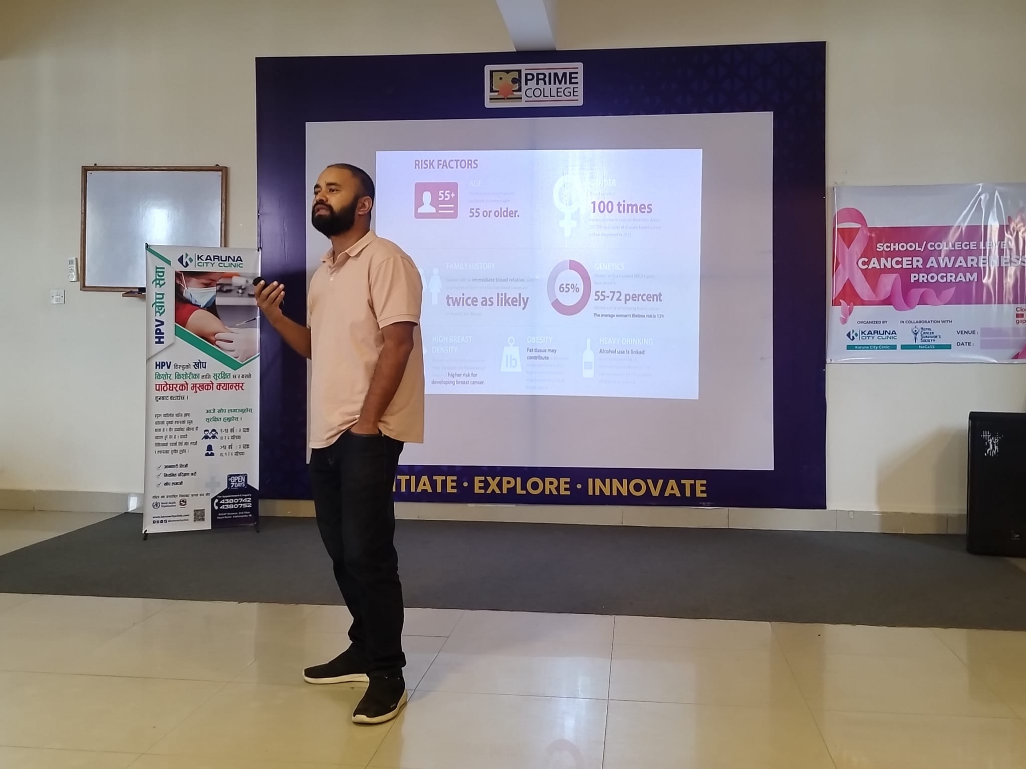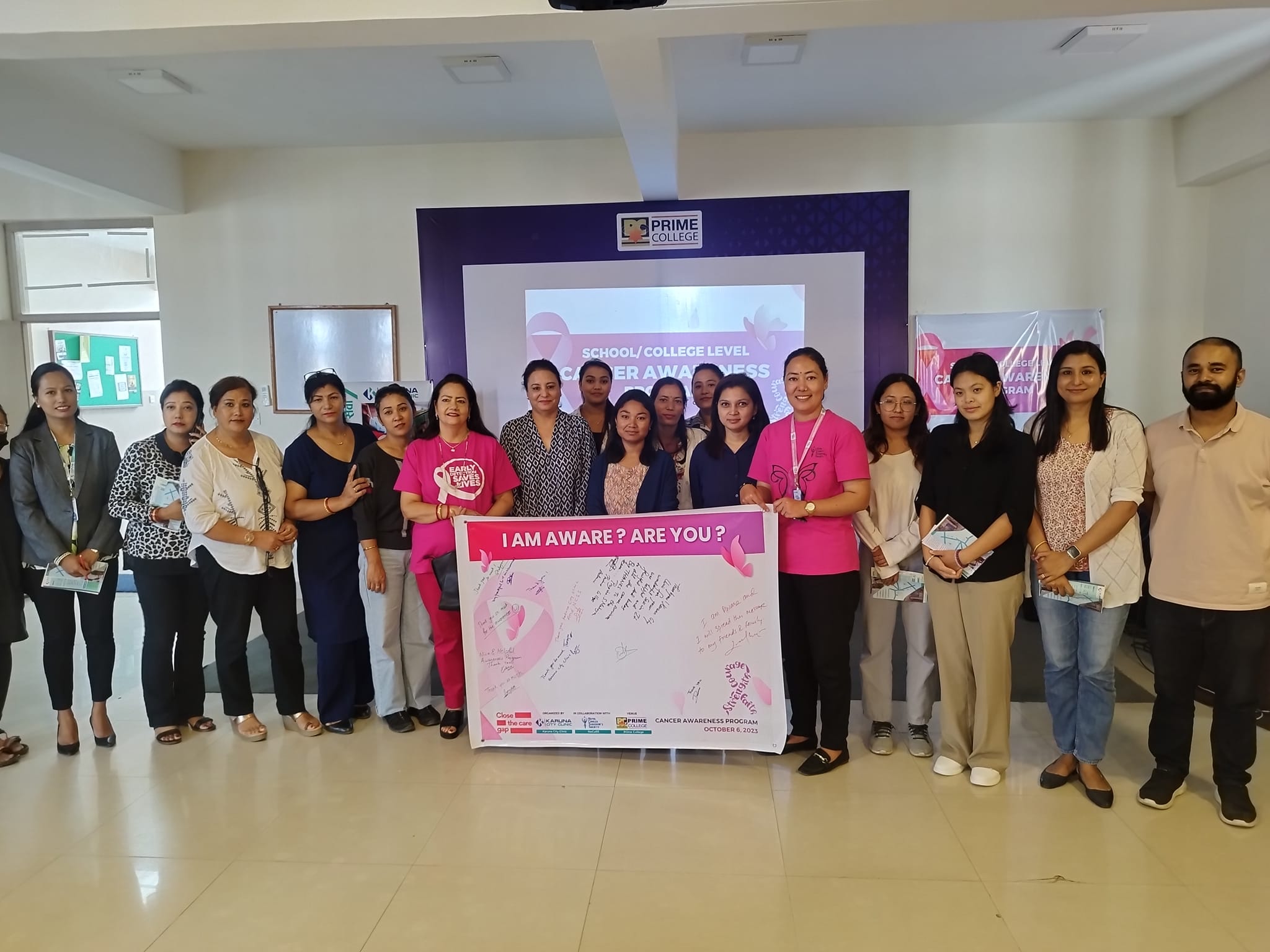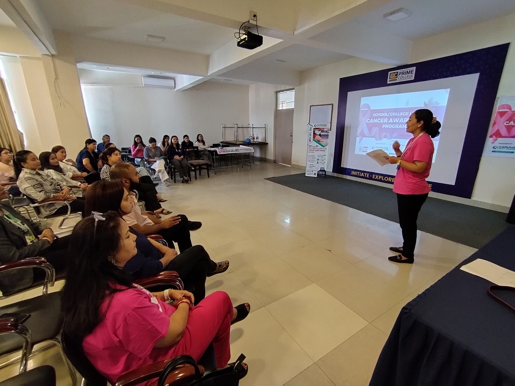 स्कुल/ कलेज तहबाटै क्यान्सरकाे बारेमा जनचेतना बढाउनुपर्छ भन्ने उदेश्यका साथ Nepal Cancer Survivor’s Society काे सहकार्यमा आज मिति असाेज १९ गते PRIME COLLEGE, खुसिबुं का विध्यार्थी, शिक्षक तथा कर्मचारीहरूलाई स्तन क्यान्सर र पाठेघरकाे मुखकाे क्यान्सर सम्बन्धि सचेतना कार्यक्रम सफलतापूर्वक सञ्चालन गरियाे ।